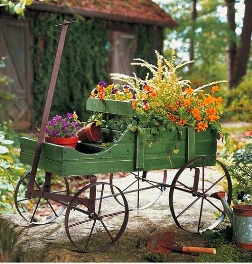 Що стосується декоративних елементів, тут існує величезний простір для уяви. Дровнік, плетені кошики, глиняні горщики на паркані – все це прекрасно впишеться в кантрі-сад.